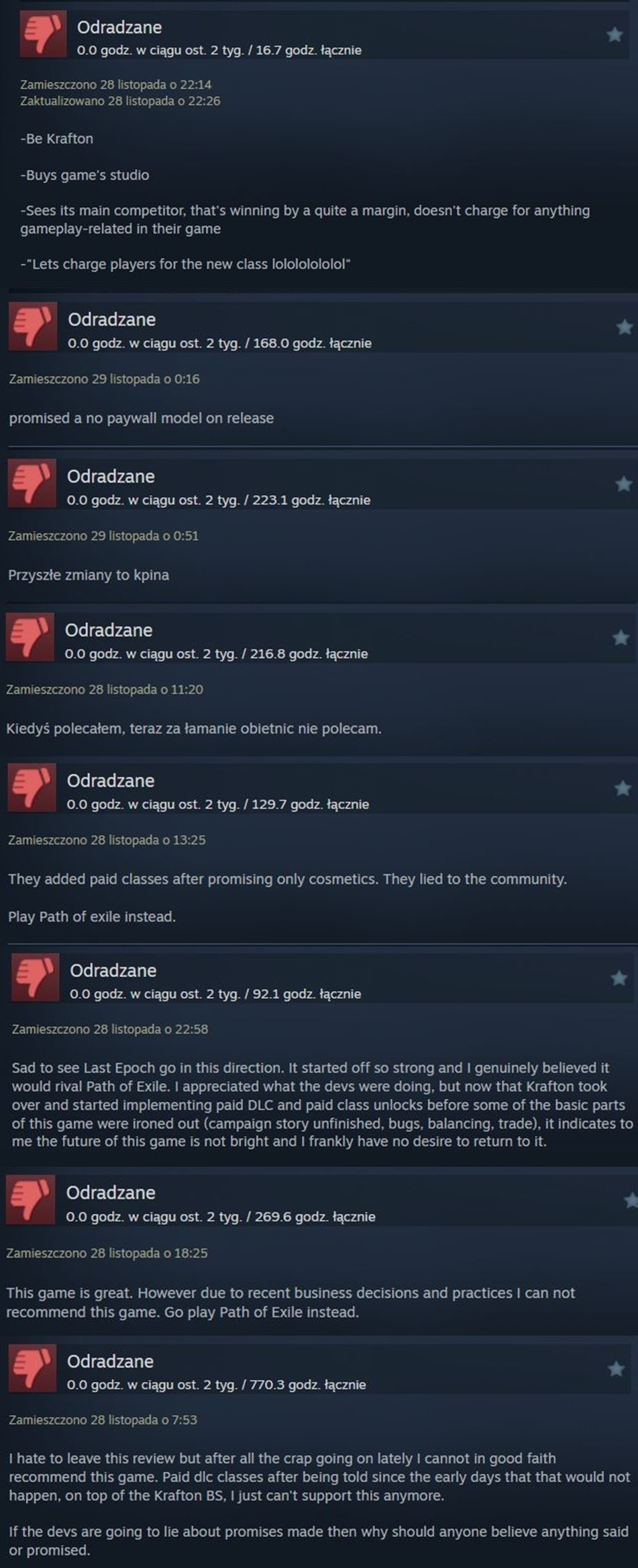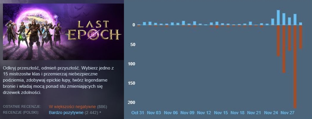To oczywiście wywołało wściekłość fanów Epocha. Ogromną wściekłość, bo deweloperzy złamali swoją obietnicę w najbardziej ordynarny i bezczelny sposób. To z kolei przełożyło się na zbombardowanie Last Epoch negatywnymi recenzjami na Steamie.