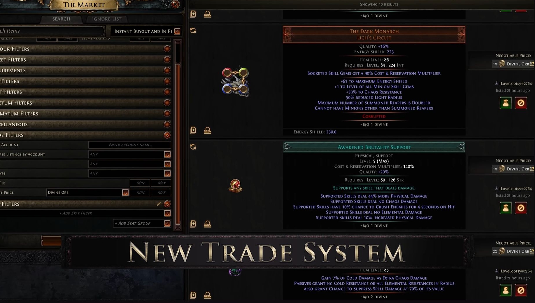 - Wbudowany Market z asynchronicznym handlem (to samo, co dostaliśmy ostatnio w PoE2)