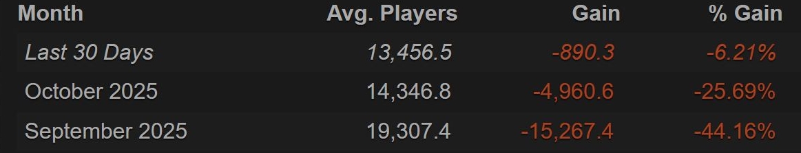 Średnia liczba graczy za ostatnie 30 dni wyniosła 13,456 osób. Biorąc pod uwagę, że przez lata Destiny 2 notowało tutaj wyniki od 40 do 120 tysięcy, to 13,456 wygląda naprawdę kiepsko.