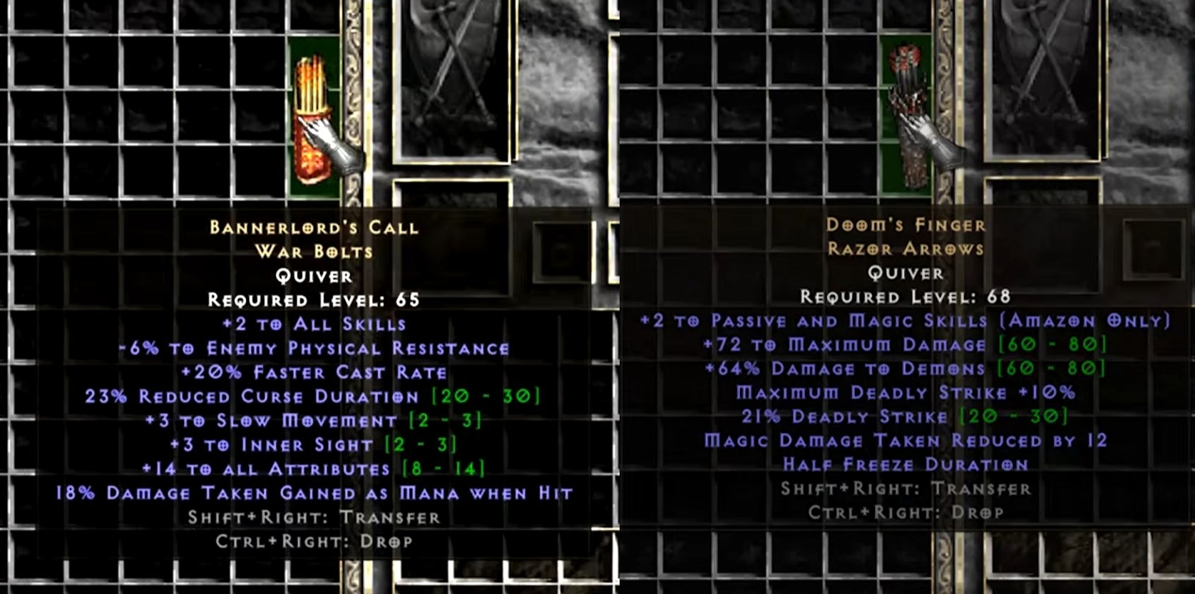 Co do reworku i przedmiotów, warto wspomnieć o gruntownej przebudowie Łuków i Kusz, gdzie dodano nowe rodzajach amunicji o różnych poziomach rzadkości, efektach i przeznaczeniu (dwa przykłady macie poniżej). Fani Diablo 2 mogli dotąd o tym tylko marzyć.