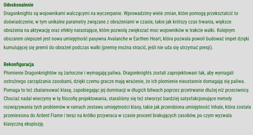 „Chcemy, aby każda klasa była spójna i wierna swojej fantazji o mocy dzięki umiejętnościom, animacjom i efektom dźwiękowym, które wzmacniają jej podstawową tożsamość. Oznacza to odświeżenie i unowocześnienie umiejętności, tak aby wyglądały i działały równie efektownie, jak te wprowadzone niedawno w nowych klasach, takich jak Arcanist”.