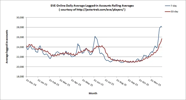Ale - co najważniejsze - za finansami poszła również zwiększona popularność EVE Online. W ostatnim tygodniu na serwerach widzieliśmy powyżej 40 tysięcy graczy. To dopiero drugi raz - w ciągu pięciu ostatnich lat - gdy liczba graczy przekroczyła tę magiczną barierę.