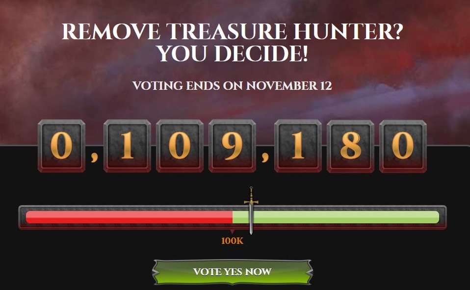 Jagex zobowiązał się tej ankiecie, że gdy liczba głosów przekroczy 100 tysięcy, Treasure Hunter na dobre zniknie z RuneScape.