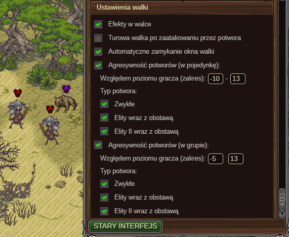 Nowa funkcjonalność umożliwiająca włączenie lub wyłączenie agresywności potworów w krainie bezpośrednio z poziomu konfiguracji gry, jeżeli potwór nie ma 14 poziomowej przewagi nad Postacią.