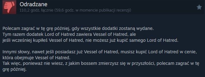 Tym razem dodatek Lord of Hatred zawiera Vessel of Hatred, ale jeśli wcześniej kupiłeś Vessel of Hatred, nie możesz już kupić samego Lord of Hatred.