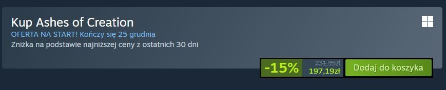 Niestety to samo dzieje się z nowo wydanym Ashes of Creation. Polacy muszą zapłacić za „zbawcę MMORPG” aż 232 zł (obecnie jest to 197 zł, ale tylko z powodu 15-procentowej obniżki).