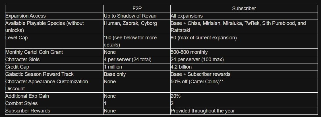Star Wars The Old Republic pokazuje różnice pomiędzy kontami F2P a kontami Premium