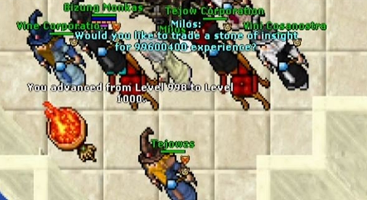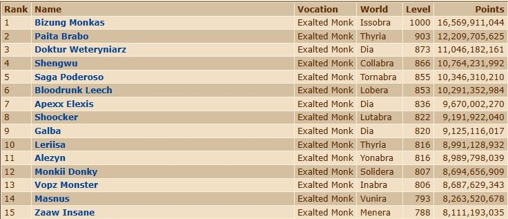 Wielkie gratulacje dla gracza o nicku „Bizung Monkas”, który jest pierwszy Mnichem (Monkiem) w Tibii, który osiągnął 1000 lvl.