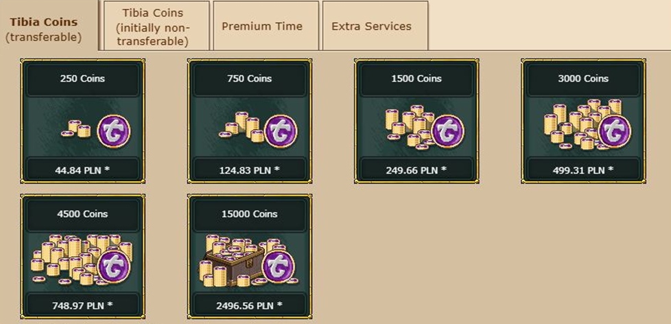 Przykład: 1500 Tibia Coins kosztuje obecnie 250 zł, więc po podwyżce (nawet tej maksymalnej) cena wzrośnie do 255 zł.