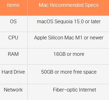 A poniżej znajdziecie zalecaną-rekomendowaną specyfikację do grania w MapleStory na macOS.