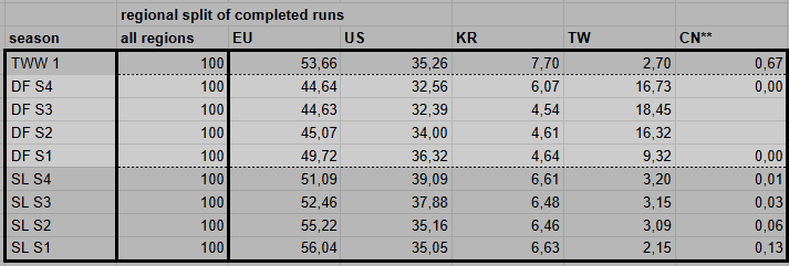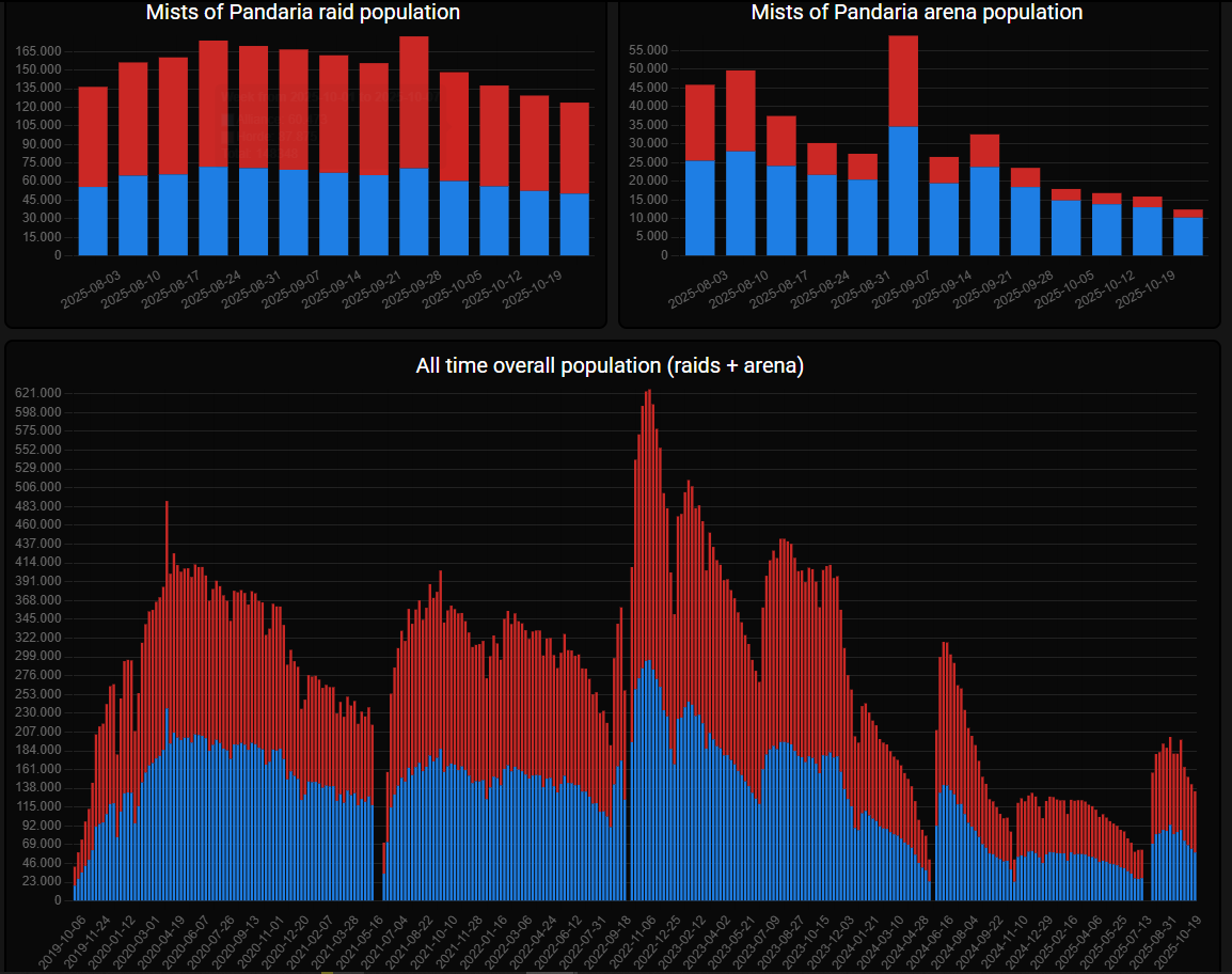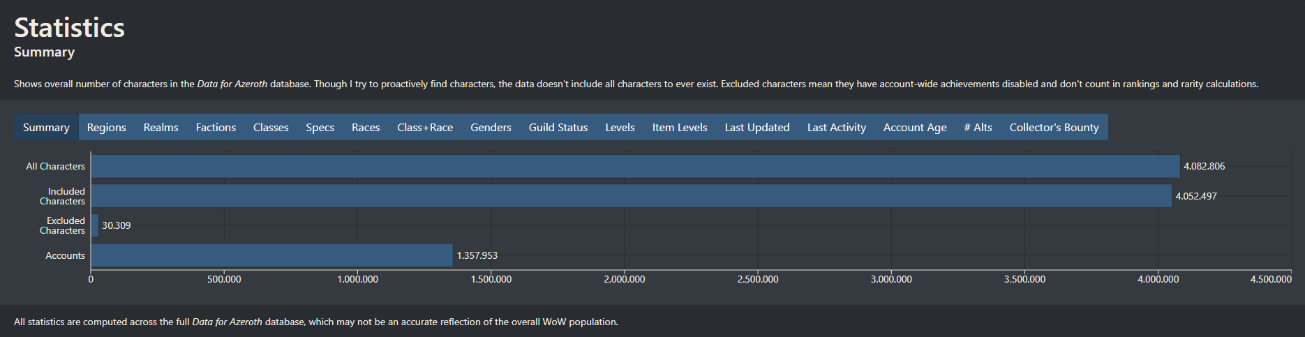 Potem więc wzięto się za wyliczenia. Policzono dane z DataforAzeroth.com, Raider.IO, IronForge.pro oraz podobnych stron. Policzono, ile osób aktywnie bawi się w M+, ile w rajdy i areny, ile osób aktywnie loguje się do gry i ma powyżej 10 poziomu. Policzono także, ile mniej więcej osób może pochodzić z Chin przy założeniu, że jeden użytkownik posiada średnio 3 aktywne postacie (main i alty).